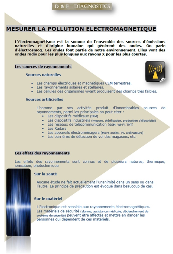 Pollution électromagnétique, mesure de l'électrosmog, haute et basse fréquence.
