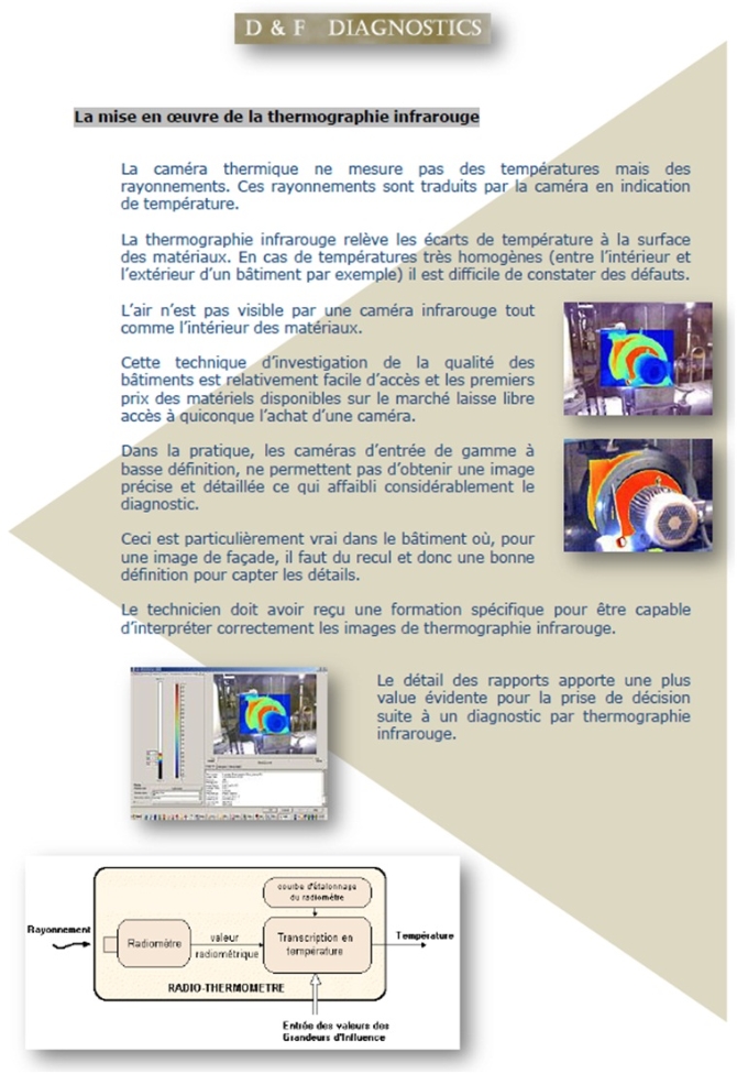 Voir aussi: Perméabilité à l'air, infiltrométrie, BBC-effinergie, Minergie, maison passive. Bilan énergétique, diagnostic de performance énergétique, DPE. Pollution intérieure, recherche de composés organiques volatiles, COV, formaldhéide, radon. Humidité des matériaux, hygrométrie, problème de fuites, de condensations. Pollution sonores, qualité acoustique d el'habitât et des matériaux, bruit ambiant et de voisinage. Pollution électromagnétique, mesure de l'électrosmog, haute et basse fréquence. Métré et relevé dimensionnel 2D et 3D, métrage, relevé de surface, mise en copropriété, SRU, Measurix, fiche d'identité des biens existants. Imagerie panoramique 360°, visite virtuelle d'espace touristique ou professionnel, d'intérêt culturel et de bien. Recherche de matières dangereuses, amiante,plomb dans les peintures, PCB. Contrôle technique des installations techniques, électricté, gaz, ventilation, chauffage.